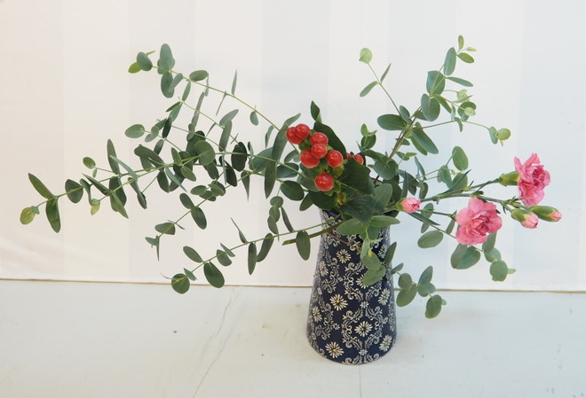 グニユーカリ、ヒペリカム、カーネーション 498円