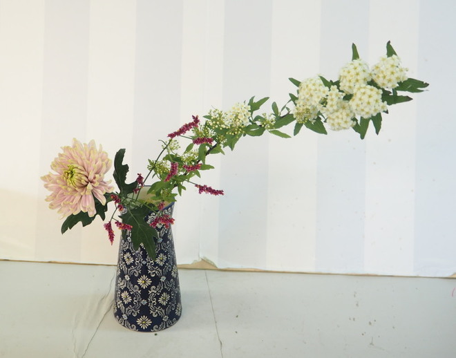 メリハリを出す為、コデマリの花を切ります。